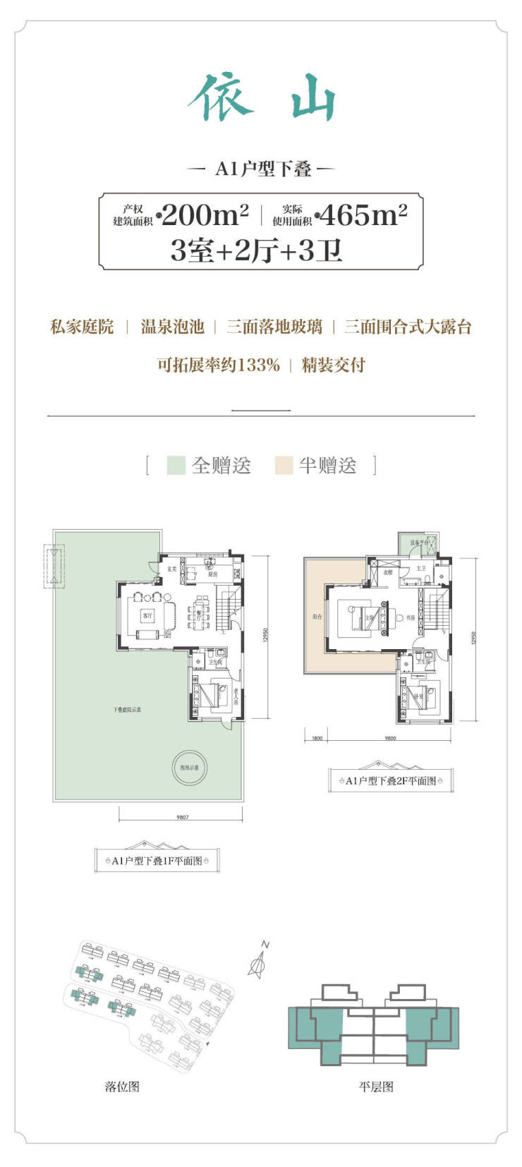 商墅丨产权建筑面积约350㎡,可拓展率约270%,实际使用面积约1310㎡