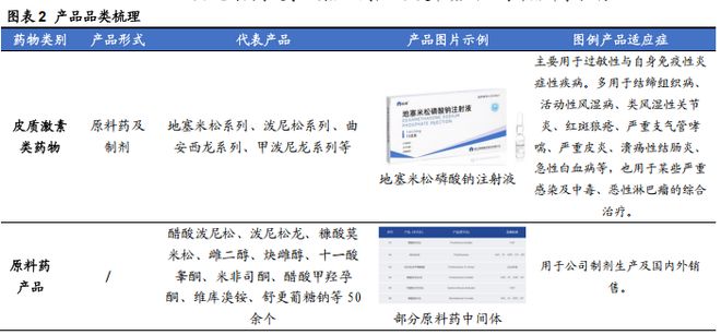公司前身为仙居制药厂,创建于1972年,主要聚焦甾体激素领域。主营业务为甾体原料药和制剂的研制、生产与销售。主要产品分为皮质激素类药物、性激素类药物(妇科及计生用药)、麻醉肌松类药物和呼吸科类药物四大类。
