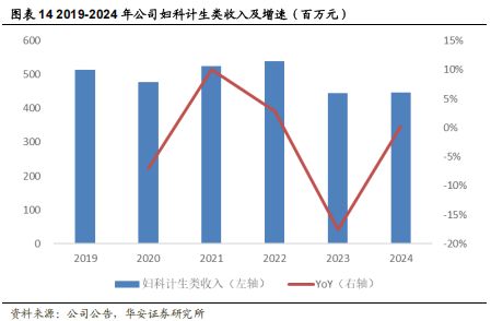 黄体酮胶囊集采影响已逐步消化,新品陆续获批构筑增长新动力。2022年公司黄体酮胶囊产品中标广东11省联盟采购,产品价格降幅明显,2023与2024年该产品收入下滑。但从整体板块收入看,2024年妇科计生类制剂产品销售收入4.46亿元,同比持平,得益于妇科新品庚酸炔诺酮注射液、屈螺酮炔雌醇片、十一酸睾酮注射液等持续放量。