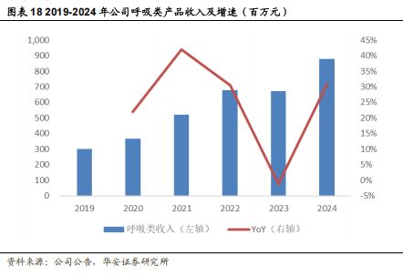 呼吸科产品保持较好增长,已储备丰富在研管线。目前公司呼吸科主要产品有糠酸莫米松鼻喷雾剂、噻托溴铵粉雾剂和环索奈德气雾剂,主要用于季节性或常年性鼻炎、慢性阻塞性肺疾病(COPD)的维持治疗以及哮喘患者的维持治疗。2024年公司呼吸类制剂产品销售收入8.8亿元,同比增长31%,增长较好。公司在呼吸领域未来将推出多款新产品,25年7月公司申报噻托溴铵吸入喷雾剂,预计2025年4季度或2026年一季度完成第二个复方制剂的申报。后续相关三连复方等剂型尚在准备中。